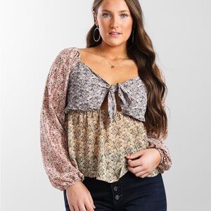 Buckle Floral Chiffon Keyhole Top Size Medium