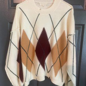 Buckle Gilded Intent Argyle Sweater Cream Sz L