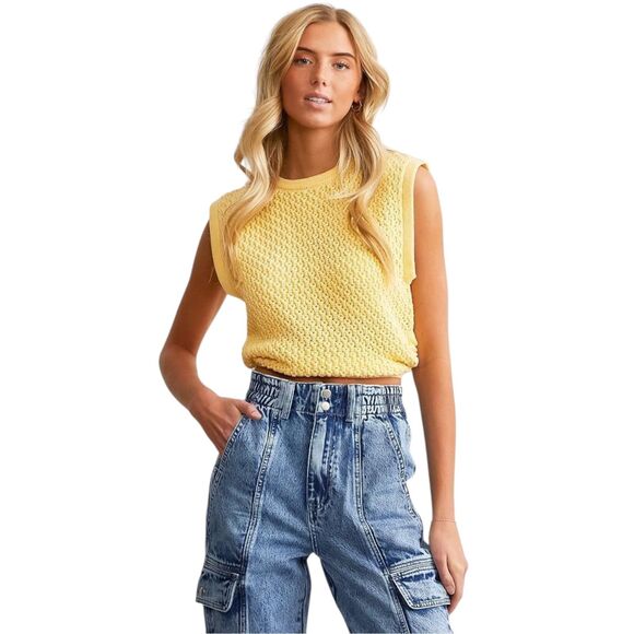 Buckle Gilded Intent Crochet Knit Crop Top Yellow Knit Sz Large