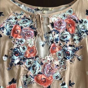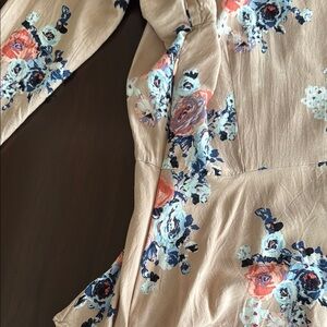 Elegant floral top in a soft beige hue, perfect for any occasion. Features a beautiful floral pattern for a stylish look.