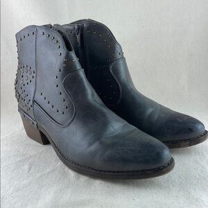 Vintage 93 Buckle Gray Studded Ankle Boots Size 7.5