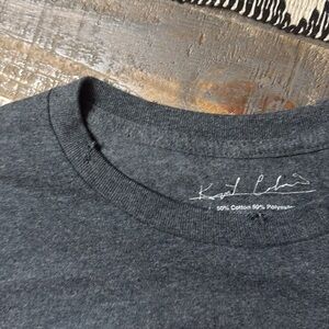 This Buckle Kurt cobain short sleeve graphic tee in a stylish gray color showcases a bold retro graphic on the front, adding a unique flair to your casual attire. Crafted from soft cotton, it ensures comfort and durability for everyday wear. The eye-catching design makes it a standout piece in any wardrobe. Smoke free home. Has holes/distressing on neckline see photos