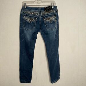 This Buckle Miss Me Skinny Jeans Womens Sz 28 Blue Denim Miss Rhinestone Thick Stitch