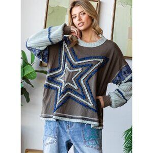 Buckle Oli & Hali Washed Star Patch work Oversized Shirt charcoal embroidered