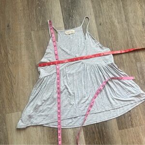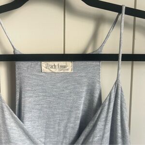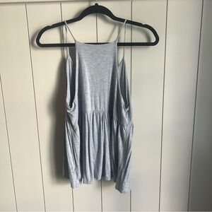 Stylish light gray camisole with spaghetti straps. Flowy and comfortable design.