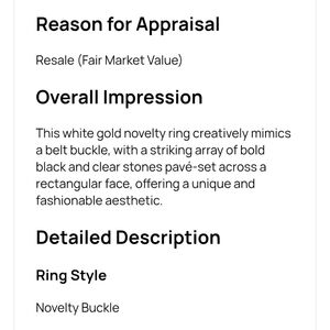 The ring features black and white diamonds, which are aesthetically set in a pavé style. Estimated to be made in white gold based on appraisal.