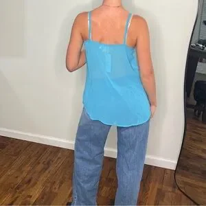 Semi-Sheer blue Buckle top (with tags) perfect for spring and summer paired with jeans or shorts/skirts! Size Medium, but can fit XSmall-Medium!