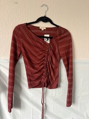 Buckle Rust Red Long-Sleeve Ruched Drawstring Top