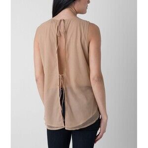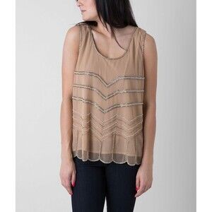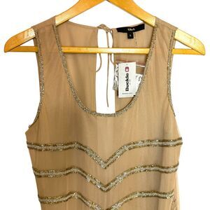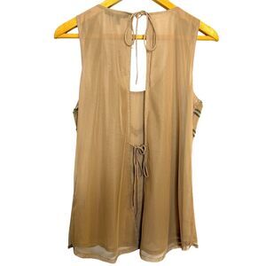 Buckle Sheer Mesh Lined Back Tie Tan Gold Beaded Tank Top Size Small NWT