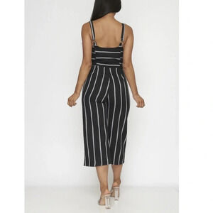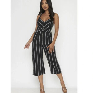 Buckle Sleeveless One-Piece Striped Jumpsuit, size small S. Brand new with tags NWT. Zipper front with 2 adjustable side panels, Cropped length. Smoke free, pet free home