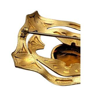 Buckle Style Czech Glass Brooch Light Brown Boho Stone Gold Tone Setting