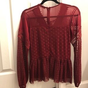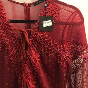 Lined v-neck lace-up pieced mesh top