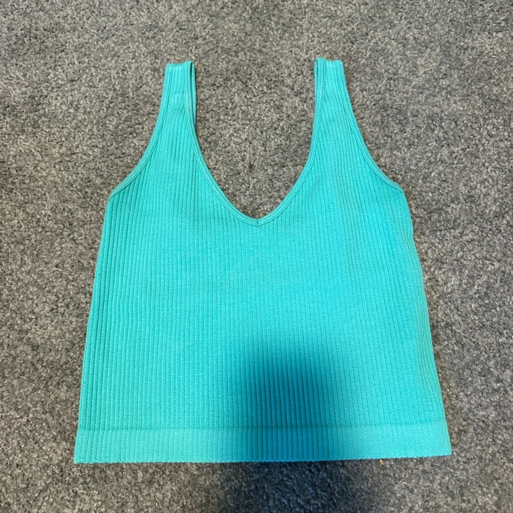 Vibrant turquoise tank top. Ribbed texture. Sleeveless design. Perfect for layering. Bought from buckle only worn a couple times.