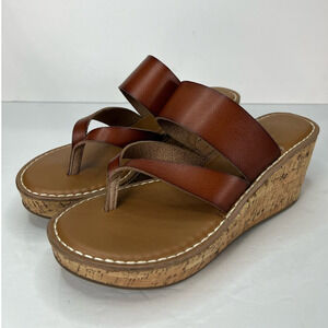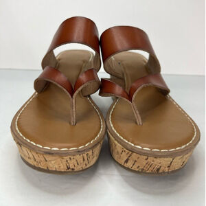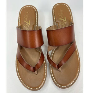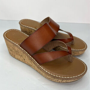 Buckle Vintage 7 Eight Cognac Dalary Faux Leather Thong Wedge Size 9
