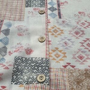 This lightweight patchwork blouse is in excellent preowned condition. Only worn once and delicately washed. Beautiful crochet details. Sold at Buckle. Please see photos for further detail and measurements.