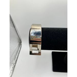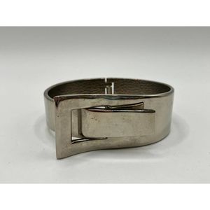Buckle Shaped Modern Silver-Tone Hinged Bracelet! Scratched on the exterior and needs cleaning.