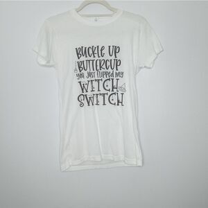Buckle Up Buttercup You Just Flipped My Witch Switch Tee by tultex size medium.
