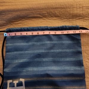 Excellent condition blue flat backpack has a zipper on the side see picture.