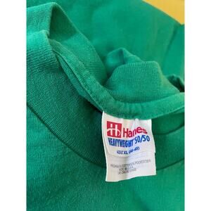 Single stitch with super cool colorful retro graphic. Small stain on the bottom. Vintage Hanes Heavyweight 50/50 tee.