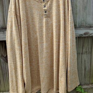 Buckskin long sleeve Henley w/ black pearl buttons shirt. MVP