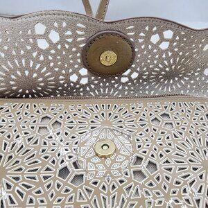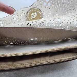 Buco Women's Laser Cut Patent Leather Floral Design Shoulder Bag