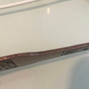 Approximately 5 inches long and 1 1/4 inches at its widest point.
