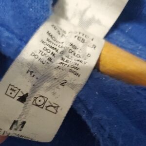 Stay cozy and stylish with the blue hoodie sweater shirt pulliver Perfect for very casual outings and just hanging around. fall apple orchards and bonfires ... one large pocket at waist may have random stain dont see any but maybe there