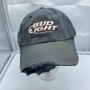 Bud Light Logo Tattered Worn Faded Gray Cap Hat Flex-Fit Stretch OSFM
