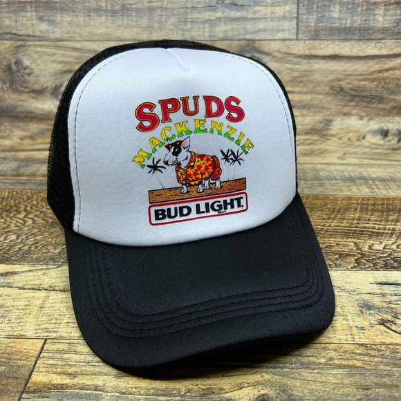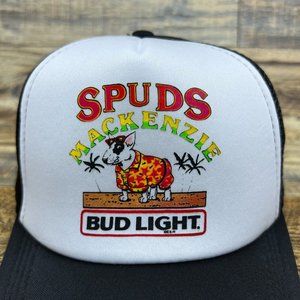 Bud Lite Spuds Mackenzie Mens Trucker Hat Black Snapback Beer Retro Logo Cap
