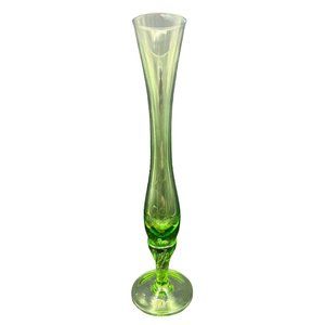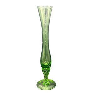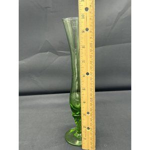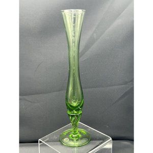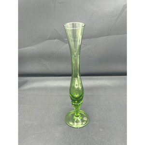Bud Vase Danish Design Hand Crafted Green Blown Glass Made In Italy 10" Tall