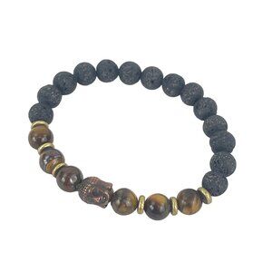 Buddha Copper Lava Rock and Tiger Eye Beaded Bracelet