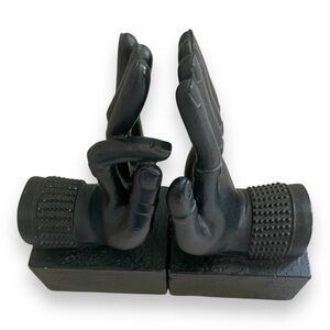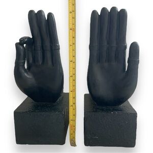 Each hand sits atop a solid base and can be used as both a decorative accent and functional book support for shelves, desks, or mantels.
