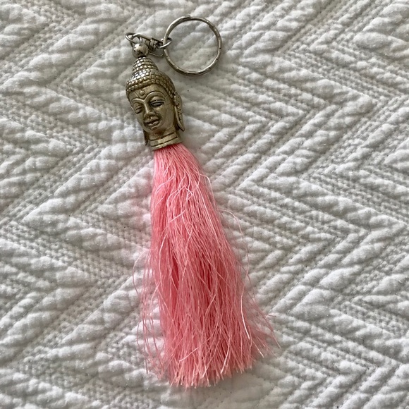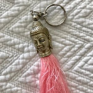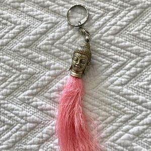 Silver Buddha head, with pink tassel. Keychain. From Bali.