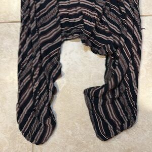 Gently worn Buddha Pants Savannah Flair Printed Harem Pants women’s size X-small. 100% cotton, black with brown and tan chain link print, elastic waist with ties, hip pockets, drop crotch, elastic at bottoms of legs. Offers accepted!