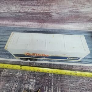 Buddy L True Value Pressed Steel and plastic semi trailer missing 1 rear door white/blue