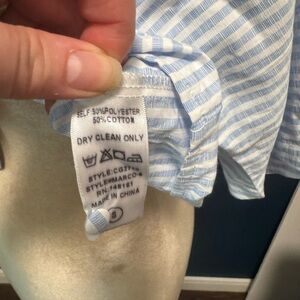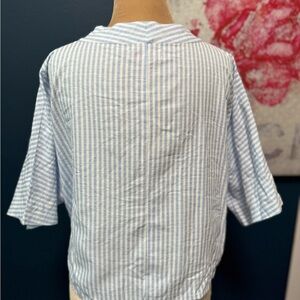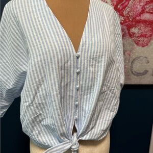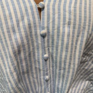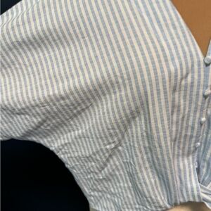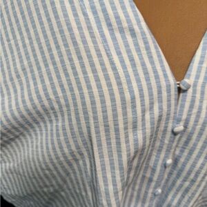 Elevate your wardrobe with this stylish blue striped button-down top. Perfect for any occasion, this top offers a chic and comfortable fit.