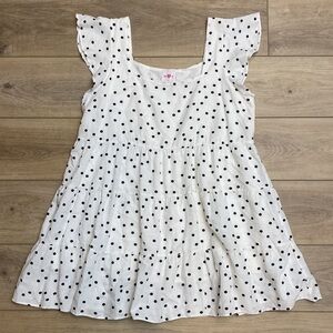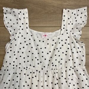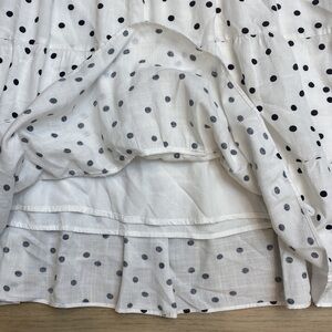 Charming white and black Polkadot square neck baby doll dress by Buddy Love. The Delilah dress is a versatile summer mini dress that’s easy to dress up with pumps and down with sandals. The loose fit makes for comfortable and effortless wear. Fully lined wit flutter cap sleeves and a tiered skirt for just the right amount of flirty ruffle. In like New Condition, never worn, Size Large L