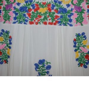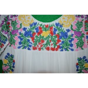 Bright embroidered floral pattern on white dress