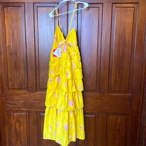 Buddy Love New Callie Song Bird Sleeveless Tiered Floral Yellow Maxi Dress M