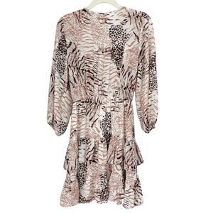 Buddy Love Sadie Tie Front Ruffle Dress Size Small Animal Print