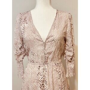 Buddy Love Women Purple Snake Mini Dress Rushed Sleeves Ruffled Hem Size XS.