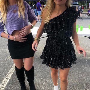 Worn once - the ruffle is flat - I took out the liner that makes this ruffle out because of my bigger breast -- Attached picture. Great condition. Super comfortable and lightweight.