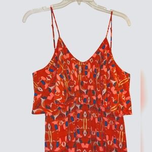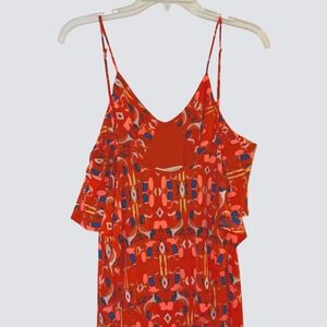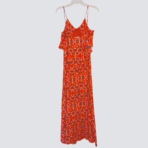 Buddy Love Women's Camisole Orange Patterned Lined Tiered Maxi Dress, Size Med