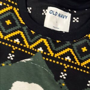 This Old Navy crewneck sweatshirt combines classic holiday charm of the movie ELF with a modern twist, featuring a striking Navy,/Black Yellow and green Ideal for holiday gatherings, this sweater offers both comfort and style.