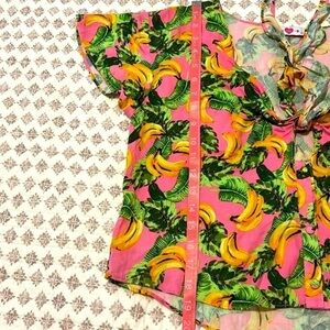 BuddyLove Banana Havana Tie Front V-Neck Flutter Sleeve Button Up Top Small