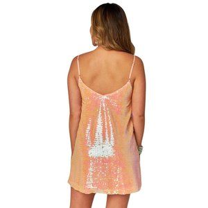 This sequin shift dress features adjustable straps for the perfect fit, v neck, and mini length! Wear her to any party, concert, or girls night out!
