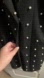Elegant black coat adorned with stylish studs, perfect for a chic look. This beautiful blazer collared dress features scattered pearls, snap buttons and pairs well with heels, boots or the right sneaker!