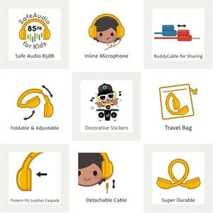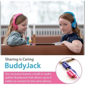 BUDDYPHONES EXPLORE+, VOLUME-LIMITING KIDS HEADPHONES, BUILT-IN AUDIO SHARING CABLE WITH IN-LINE MIC, FOR KINDLE, IPAD, IPHONE, OR ANDROID, ROSE PINK