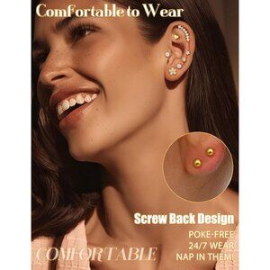 Features: This set comes with 14 adorable pairs in a variety of shapes like moons, stars, hearts, roses, and more. Made of high-polished 316L stainless steel and AAA+ CZ, hypoallergenic, lightweight, and super comfy. Easy to wear and remove, ideal for mixing and matching with all your outfits.
