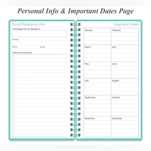 Stay organized with this stylish aqua budget planner. Perfect for managing your finances efficiently. This tracker will help you keep your money organized, spend well, start saving, set and achieve financial goals. It can help you to manage all your personal finance, savings, debts, daily expense etc.